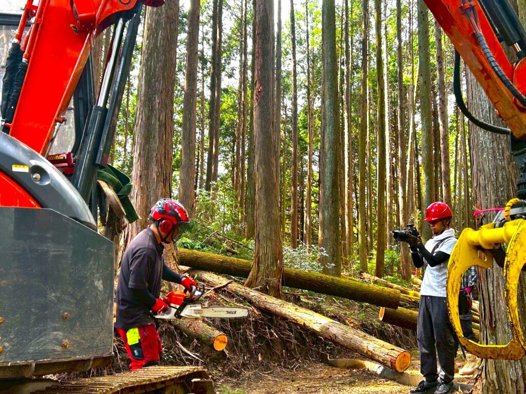 担当の方もみなさん本当に熱心で、親身になってたくさん相談に乗っていただき、社長が分からないところをしっかりと導いてサポートしてくれました。そして今回のインタビューの際、お世話になった商工振興課の女性係長は自らチェーンソーを握りなんと林業体験まで!